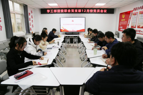 12月31日上午,学工部团委联合党支部在尚朴楼一楼会议室召开了12月份党员大会。会议由党支部书记郭理想主持。