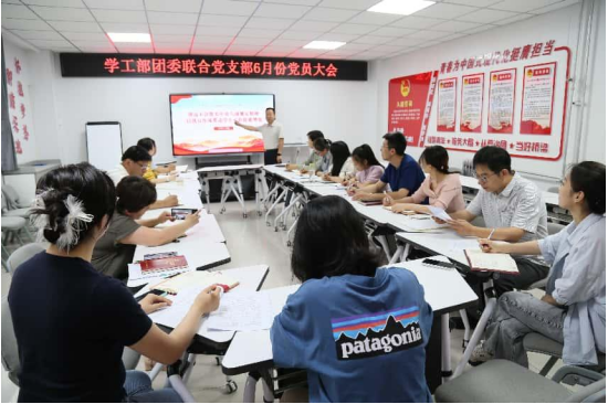 6月25日上午,学工部团委联合党支部在尚朴楼一楼会议室召开了6月份党员大会。会议由党支部副书记杨昕主持。